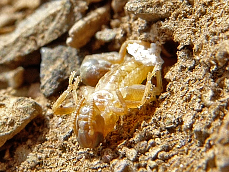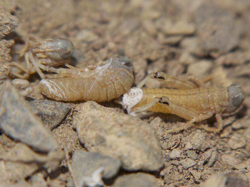 On 06/25/14, we were lucky enough to observe ten or more first instar Nisquallia olympica emerging from the ground after hatching from underground eggs.