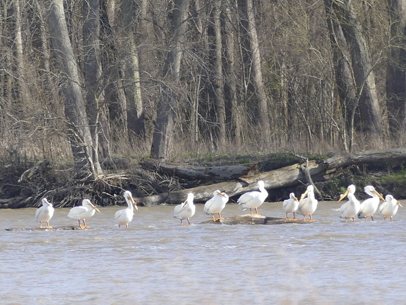 We saw these pelicans in a pond just off the highway near near Alton Illinois.