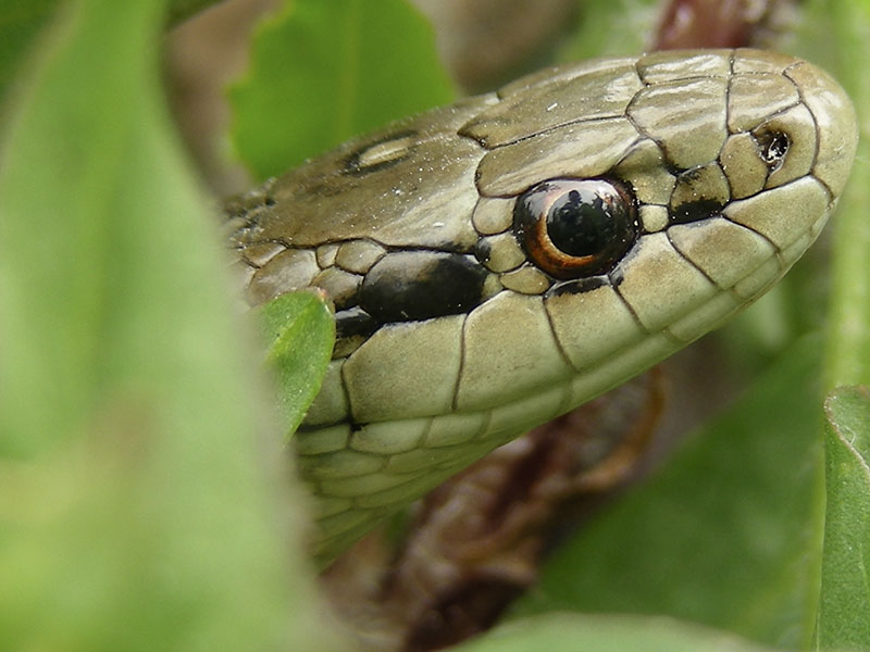 The eye cover in a garter snake is so smooth that it makes a good mirror (slide 9). They eat many small animals, including small mammals, slugs and some even eat the toxic Rough-skinned Newt (see Amphibians in the menu).