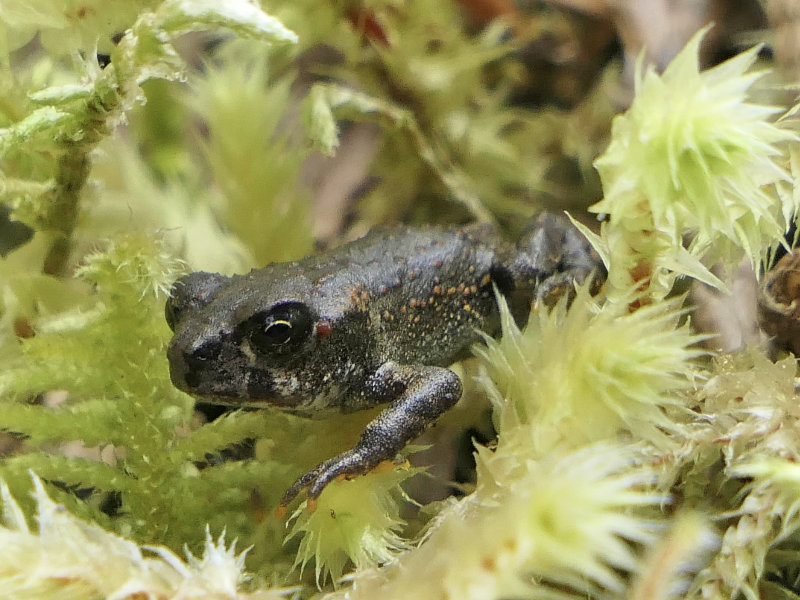 Recently metamorphosed Western Toadlets (slides 1-4) are about 10 to 16mm in length. After metmorphosis, the toadlets leave the water and disperse, sometimes in the thousands or millions. https://www.cumberlandforest.com/western-toadlets-on-the-move/