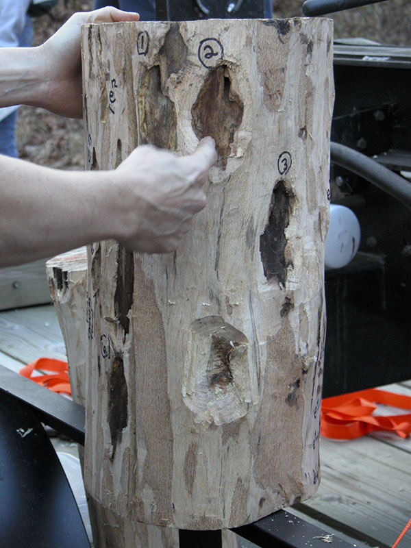 Some cerambycid larvae can be destructive to trees. The larva of the Red Oak Borer, Enaphalodes rufulus, an eastern and midwestern species, excavates huge galleries under the bark of oak trees (slides 9 and 10). I took these photos during a field trip in the Ozark Mountains of Arkansas in 2004, with Dr. Fred M. Stephen, part of a CASW New Horizons meeting.