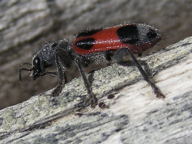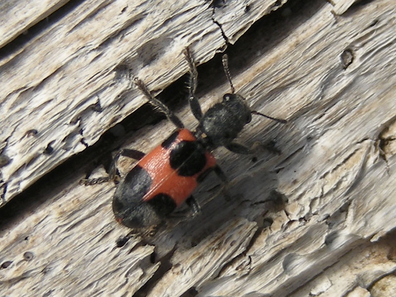 This member of the Checkered beetle family (Cleridae) shows up every spring on logs at Port Williams beach on Sequim Bay, Washington. Adults and larvae of many species in this family are predators.