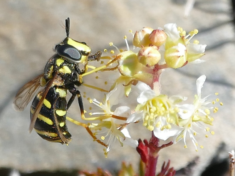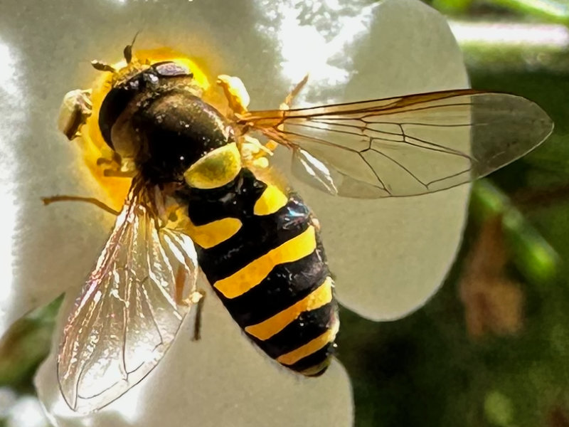 If you get a sharp photo, or use butterfly binoculars, you can recognize a syrphid fly by the spurious vein in its wing (slide 9). If you see a syrphid holding just a little too still, look for a crab spider (slide 7).