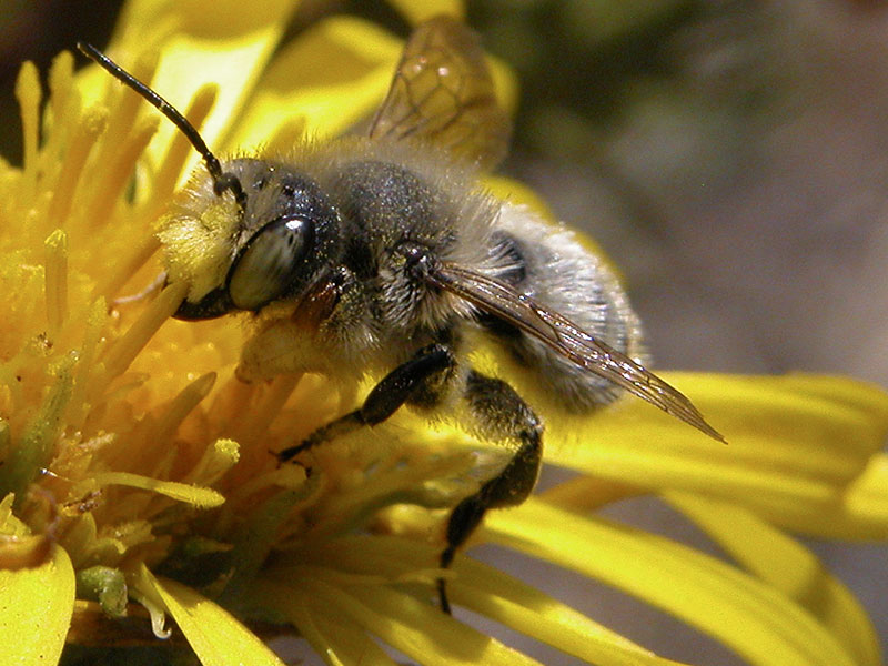 Megachilids lay eggs in holes they dig in the ground. Some species separate egg chambers with small leaf circles; others are nest parasites (see Leafcutter and Cukoo in the menu).