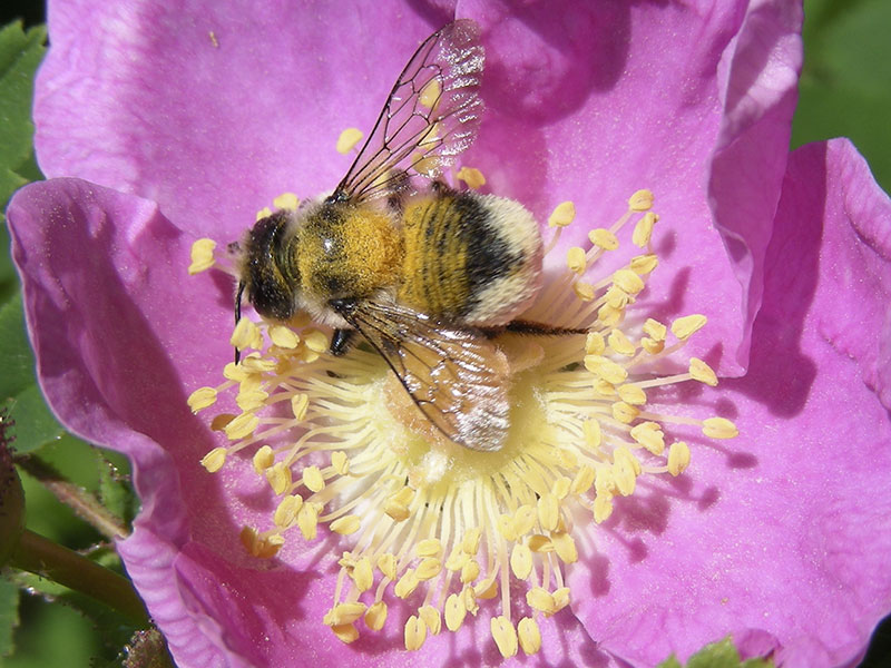 The bee shown in image 5, has Nootka rose pollen on the abdominal scopa and another species of pollen on the back.
