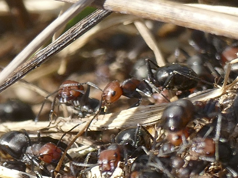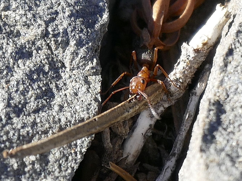 When the sun is out, Thatching Ants congregate in a crescent-shaped area on the side of the anthill opposite to the sun (slide 14 ). The time-lapse video (video 1 24 MB) compresses over 3 hours of a sunny morning. You can see the sun warm the anthill, the ants swarm out, then slowly retreat to avoid the direct sun on the hill. (We shot the video on an iPhone X using the standard time lapse function, then retimed it in Final Cut Pro X to 50% to slow down the motion.)