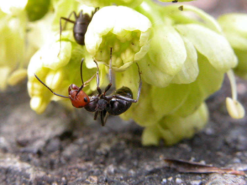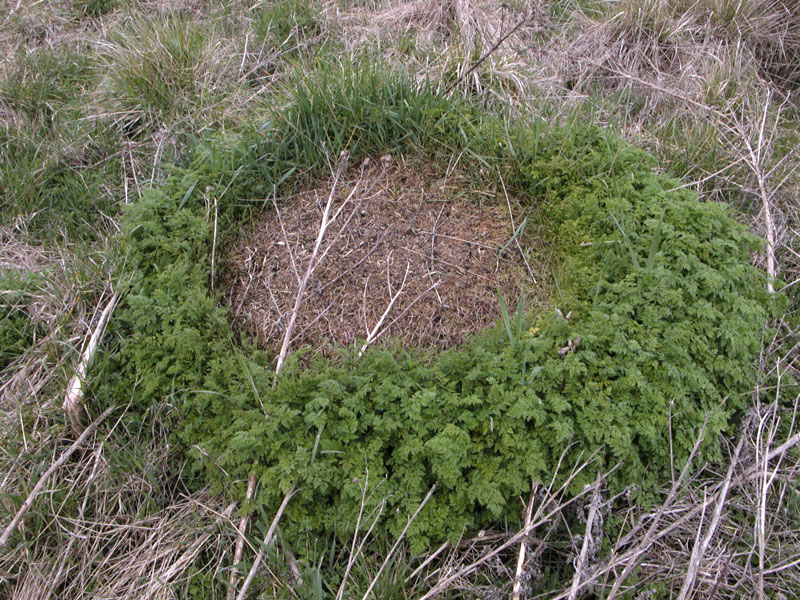 In some cases, the activity of the ants causes plants to flourish in a ring around the hill. The effects on plants near ant hills may arise from several factors, including seed dispersal by the ants, a process called myrmecochory (slides 15 and 16).