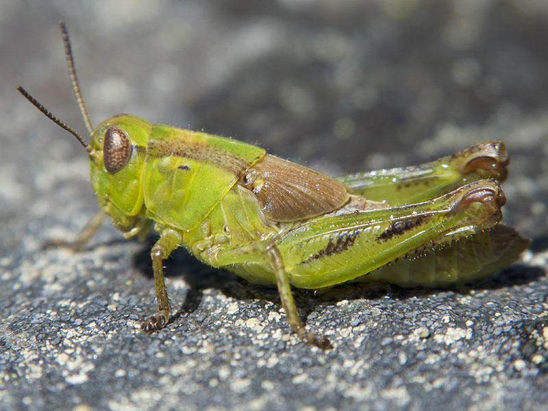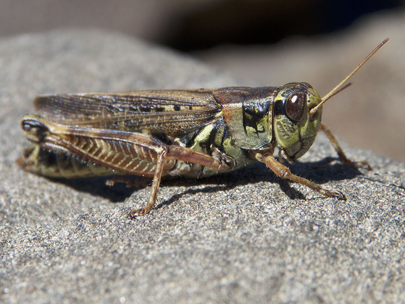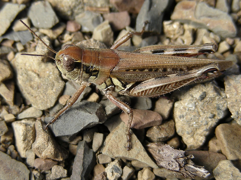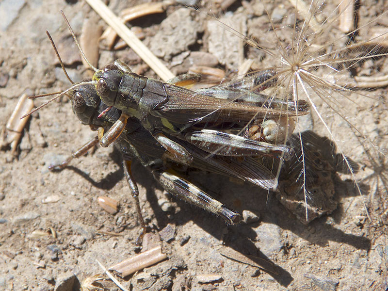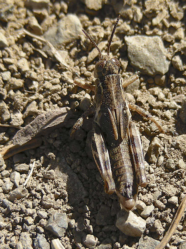 The Migratory Grasshopper occurs thoroughout the United States and southern Canada, often in weedy, disturbed environments. A significant crop pest, this species migrates en masse when the population density increases.