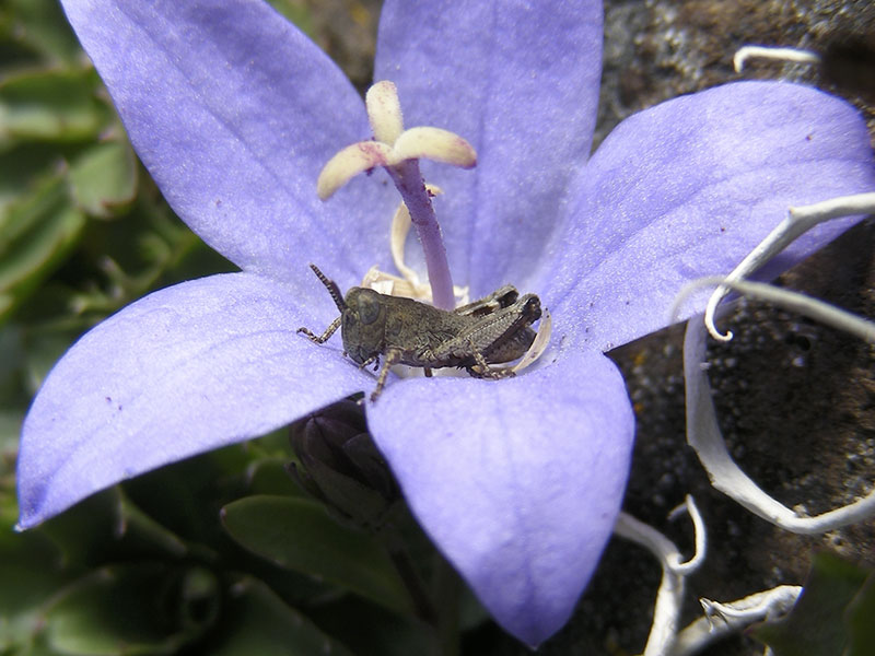 A later instar sitting on Piper’s Bellflower, an endemic plant of the Olympic Mountains. Many grasshopper species have five instars, including the final, sexually mature adult.