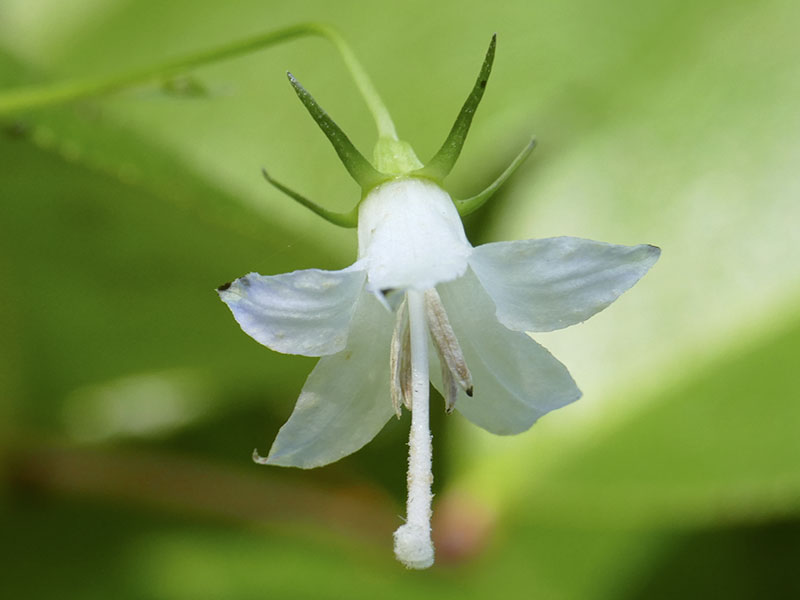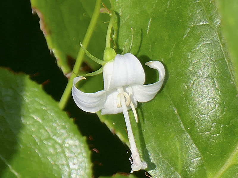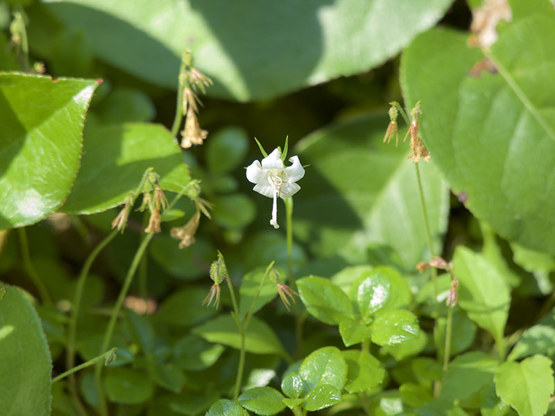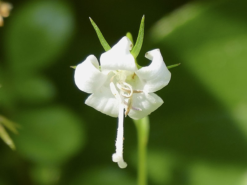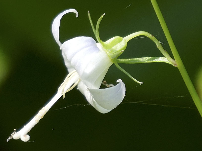 Scouler’s Bellflower, also called Scouler’s Harebell and Pale Bellflower, Campanula scouleri, grows mixed with other low-growing plants at low to middle elevations on the Olympic Peninsula. It is closely related to Bluebells of Scotland and Piper’s Bellflower. The small flowers are bright white, with touches of blue as the flower ages.