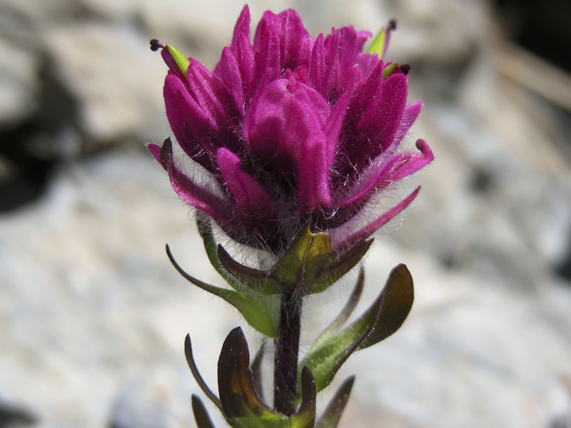 According to Charles Stewart in Wildflowers of the Olympics and Cascades, “Three species are commonly found in the Olympics: Scarlet Paintbrush, Harsh Paintbrush and a variety of Magenta Paintbrush.” In the Olympics, if you see a magenta-colored paintbrush it is likely to be Castilleja parviflora olympica this is a variety (subspecies) of Magenta Paintbrush. Both Scarlet Paintbrush, Castilleja miniata, and Harsh Paintbrush, Castilleja hispida, can be red to orange, therefore color isn’t a distinguishing characteristic. According to guidebooks, it takes some close observation with magnification to tell them apart.